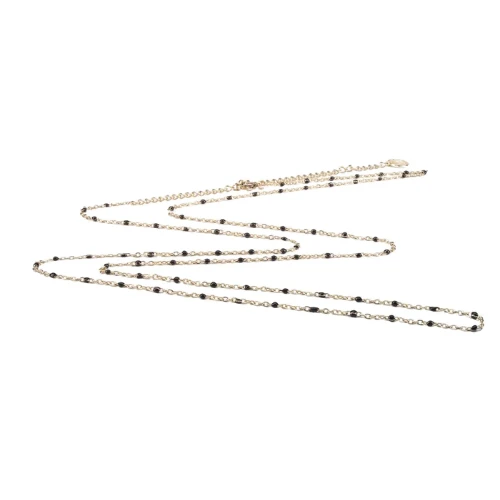 The adjustable gold plated stainless steel chain with black resin pearls