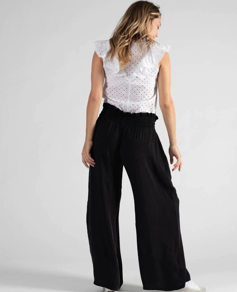 The black Sahel maternity pants combine fluidity and comfort with their twill fabric and smocked elasticated waistband.