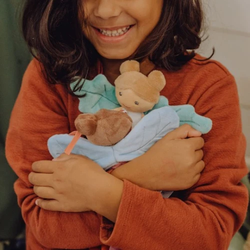 Gaia disguises herself as a forest fairy! Wearing 2 buns, she puts on her finery: her coral dress, her leaf-shaped wings and her autumn leaf-colored slippers. Thanks to her magic leaf-shaped wings, she likes to fly over the forest while singing. With this fine and delicate doll brimming with poetry, each child will have fun happily imagining very pretty, sweet and creative stories.
