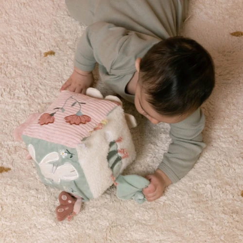 Explore nature with little bird Abby and her friends. Rendered in an array of appealing hues, this super-soft Activity Cube will trigger your baby’s curiosity. Every side features a different activity and is dressed in various textures, shapes and stimulating features. The cube can be grasped and rotated and comes with a blooming mirror for self-discovery. It makes for endless entertainment while developing your child’s senses.