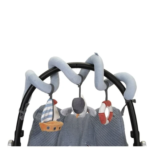 Ahoy there, sailor! Make every day a bayside adventure for little ones with this inviting activity spiral. It stimulates your baby’s first hand-eye coordination and makes for hours of entertainment. Crafted from cotton and corduroy, this touch-and-feel sensory toy includes a hanging seagull, a sailboat and a life ring with various fun labels and a mirror for self-discovery. It’s easy to attach to everything from playpen to car seat and stroller.