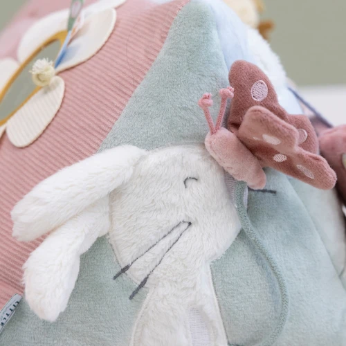 Explore nature with little bird Abby and her friends. Rendered in an array of appealing hues, this super-soft Activity Triangle will trigger your baby’s curiosity. There’s so much to discover during tummy time! Every side features a different activity and is dressed in various textures, shapes and stimulating features.Â