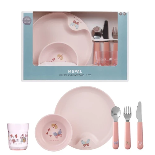 You’ve got this! And this Mepal Mio dinnerware set for children has got you! Make every meal time special for your toddler and create a fully coordinated table setting inspired by the Flowers & Butterflies collection. The illustrated butterflies will guide your toddler through the different flavours and food structures. This light pink set includes all the dinnerware needed to cater every meal and snack throughout the day. There’s a plate, a bowl, a glass and cutlery. All made of strong material and designed for training table manners and some occasional spills and throws. So come, let’s eat!