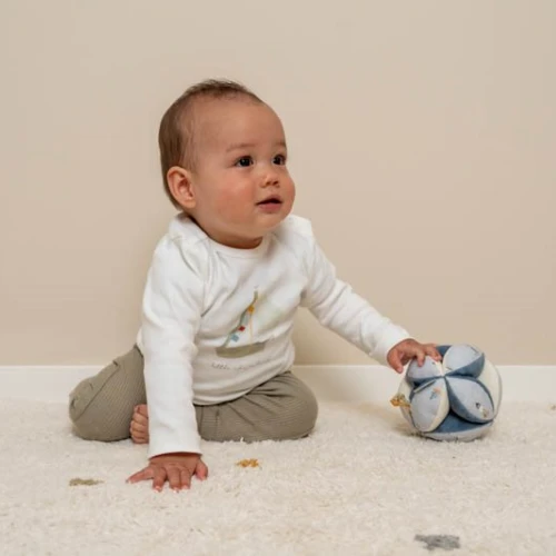 Reach and go for it! This gripping ball with its interesting shape makes for a great challenge for your little one. There are many spots to grab and explore with different textures and patterns. It’s easy to pick up for little hands and when it moves the joyful sound of the bell rattle will cheer your baby on. On a light blue decor of Sailors Bay, the easy-to-grab knots and various labels will stimulate the senses, develop grip and keep your baby engaged in the playpen.