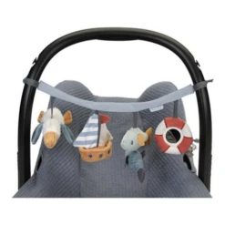 Being awake was never this fun! Our stroller activity chain is a great way to keep your little one entertained. It features four different hanging toys to look at, grasp for, and play with, including a pelican, a sailboat, a fishy duo, and a mirror in the shape of a life ring. Easily attach it to a stroller or car seat for enjoyment on the road. It encourages children to stretch out their arms and enhances hand-eye coordination.
