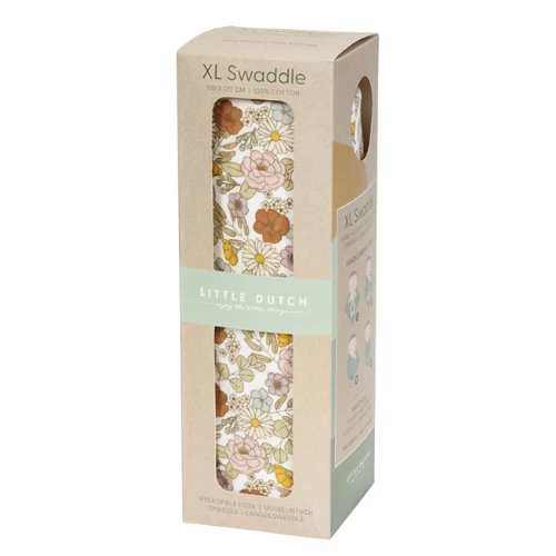 As a multifunctional absorbent cloth, the Little Dutch swaddle cloth is a real must-have item! It is made from highly absorbent and incredibly soft cotton. Ideal for drying off your baby after a bath, as a cover during changing or as a burp cloth when feeding your child. It also makes for a wonderful maternity gift! It is extra large and includes the Vintage Little Flowers print.