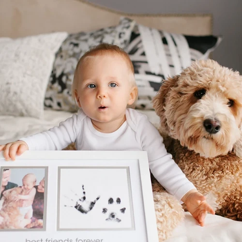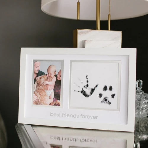 - Keepsake frame features space for a memorable photo of your child with their best fur friend, a special spot for their handprint and pawprint, and a ready-to-hang design that boasts a sturdy sawtooth wall hanger