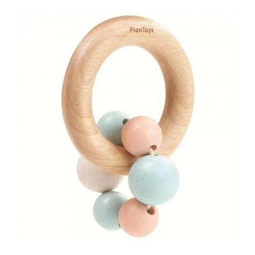 This pastel coloured and natural wood rattle is in a ring shape, so it’s super easy for little fingers to grasp and shake. Six pastel coloured beads safely hang from the wooden ring, so that when your little one grabs and shakes this wooden rattle, it gives a rewarding shaking sound.