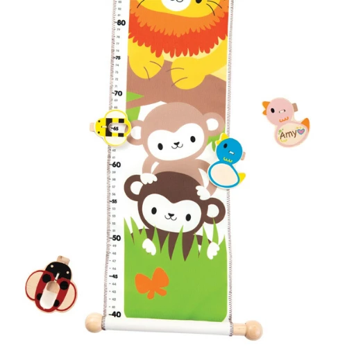 Choose Jungle printed canvas growth charts for your kids! This set comes complete with 4 animal measuring clips, which is movable from height to height. Measures heights from 40-160 cm and hangs easily from the attached rope at the top of the chart. Suitable for children 12 months and up.